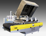 PRAGMA SRL, introduces the new series of continuous multiblade saws for sizes until 1600 millimeter, answering to the requirements of the market to operate on big sizes to obtain more and more small final pieces. To the traditional range SECO 500 and SECO 700 the new machines with belt of 1000, 1300, 1600 millimeter are available. Available with 2 or 3 heads of cut in order to solve perfectly every job, from the simple lateral gauging to the production of bevelled mosaic. The possibility to adopt motorizations until 29 Kw for head, allows moreover the working with group of cut composed of more then 25 discs, also on hard material like granite or gres-porcelain. The machines can be completely operated and equipped by one operator in the front section thanks to the mobile control panel complete of visual display units of position (vertical and horizontal) and the head with motorized vertical regulation.